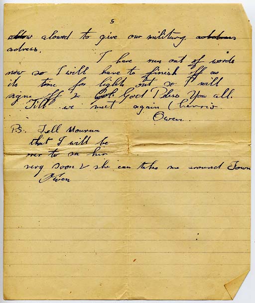 I have run out of words now so I will have to finish off as its time for lights out so I will sign off & God Bless You all.
