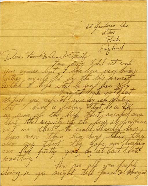 I expect you no that Michael was reported missing in Malay but I have a feeling that he is OK as some of the boys that escaped say that the majority of the boys are prisoners & I no that he could, hardly have been more than Six days their, thy also say the that Japs are treating our lad pretty good, so, at least that’s something.